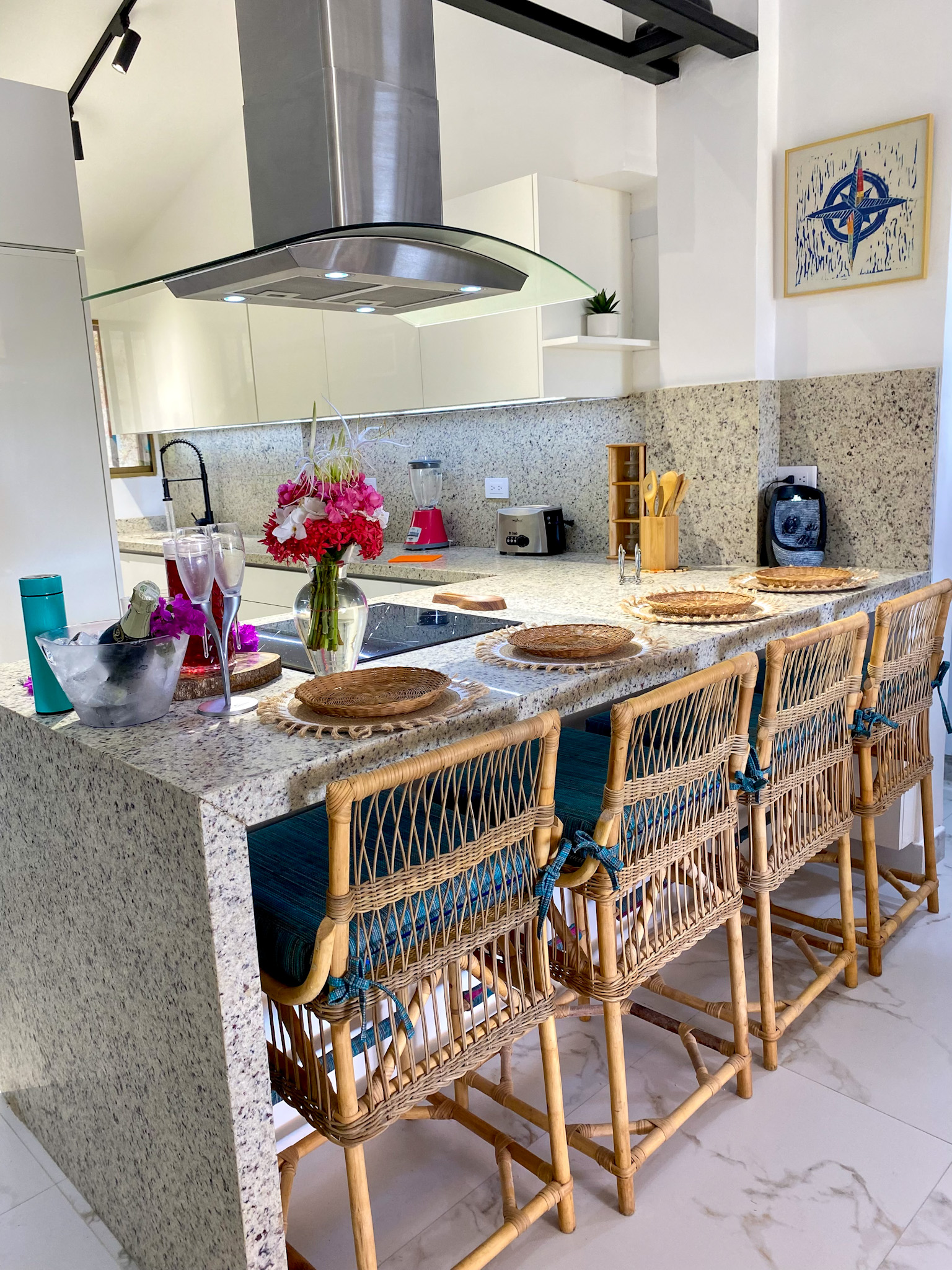 Con la frescura que evoca el mar Mediterráneo en la isla de Ibiza junto a la belleza del Mar Caribe en la Isla de Margarita, nace la inspiración para una cálida morada que invita a unas vacaciones inolvidables con un estilo único, que combina lo clásico Ibicenco con lo moderno excéntrico caribeño, como amalgama perfecta para el deleite y confort de quienes escojan disfrutar de la magia y el encanto de una estadía romántica o familiar en la perla del Caribe.